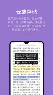 使用统一账号登录,您的书签,高亮,笔记等数据都可跨设备同步。云端数据存储方便您随时整理阅读中的心得和思考。