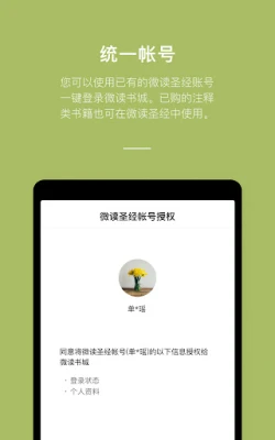 您可以使用已有的微读圣经账号一键登录微读书城。已购的注释类书籍也可在微读圣经中使用。