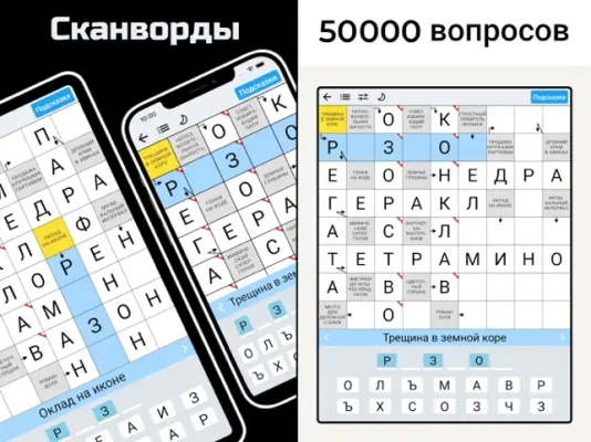 - Более 50000 уникальных вопросов, более 6100 сканвордов.