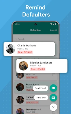 * Payment Followup - You can view all the Owners/Tenants whose community dues are pending and the amount of pending dues. You can send reminders to the these members.