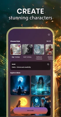 Stuck for ideas? Get inspired with a wealth of fantasy drawing ideas and concept art in the AI fantasy character generator app to kickstart your creative journey. Create an entire fantasy world filled with fantasy landscape art, unique AI characters, and creatures. Download the AI fantasy art generator today and embark on an artistic adventure like never before!