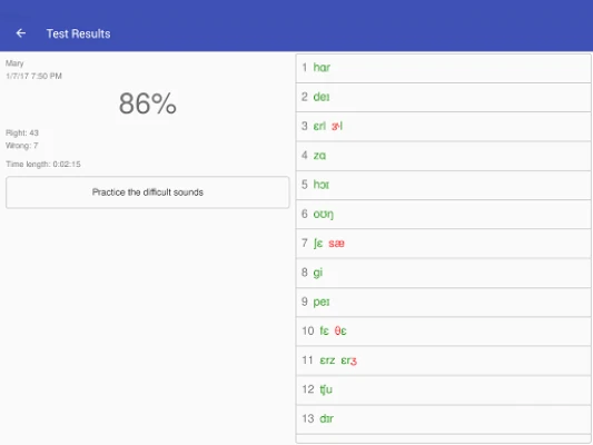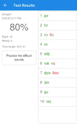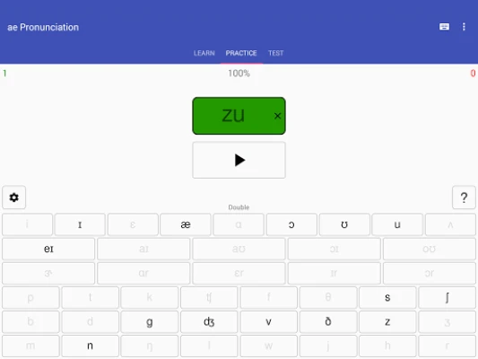 Students can learn, practice, and take tests on both individual sounds and double sounds. The double sounds, which consist of a consonant and a vowel, were added to help students differentiate sounds in context.