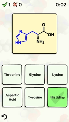 Test and improve your knowledge of the 20 standard amino acids using this app's customizable quizzes.