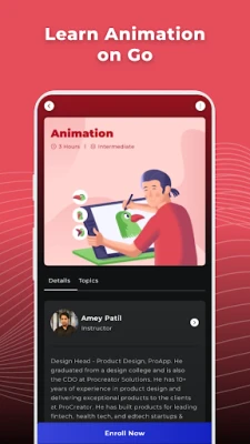 Next, "Topic 4: Core Principles of Animation" introduces you to the indispensable principles of animation. Understand concepts like Squash and Stretch, Anticipation, Pose to Pose, Arc, Timing, and Exaggeration. These cornerstones are designed to elevate your animation design learning experience.