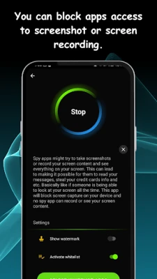 With the screenshot blocker, you can prevent spy apps or malware from taking screenshots or recording your screen.