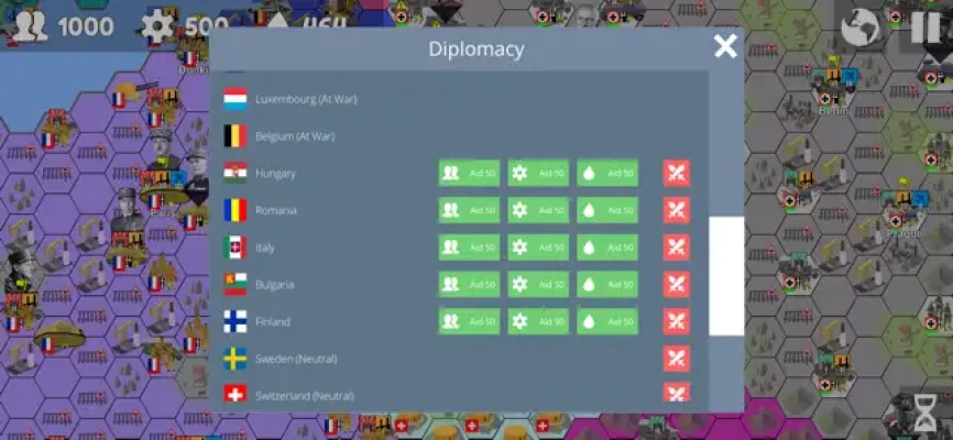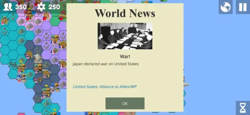 From custom events to war declarations, this recent addition allows dynamic games of multiple alliances and betrayals; custom events can also be made to reflect historical events with different types of consequences (changes to resources, alliances, unit experience). Aid can also be given to allies like Lend Lease in the real WW2.