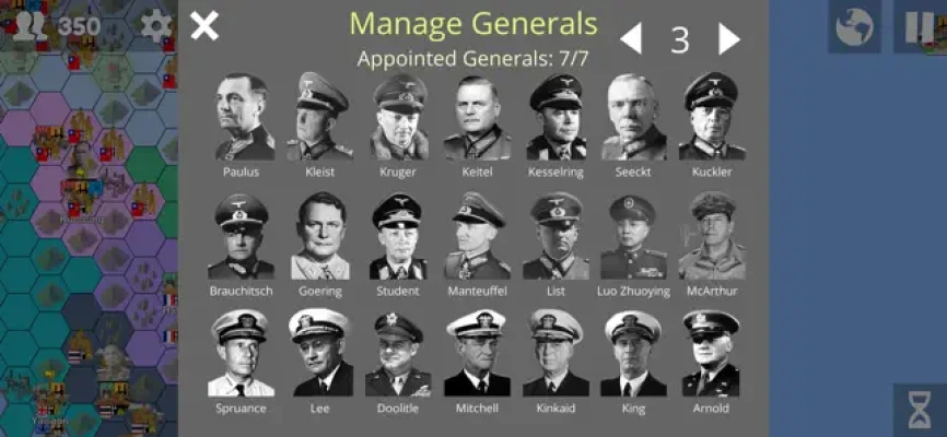 Hundreds of generals - with more coming by each update - from various countries around the world. Generals are not tied to specific units; they can be sacked from a unit on the spot and be replaced at any time.