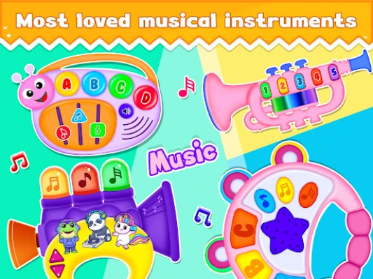 Enjoy Educational Musical Piano Toys. Includes Pink Electronic Musical Instruments with colorful animations. Explore Soothing music, with pink and cute instruments ! Girl Games to play and develop musical talent. Dolls, grow your collection of virtual musical instruments and play with musical toys!