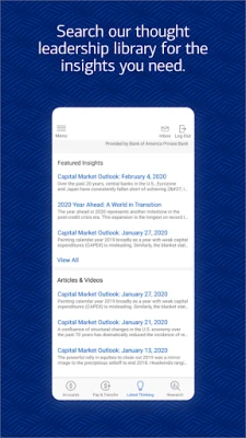Bank of America Private Bank Account Access for Android allows you to easily access important account and market information and stay connected to your advisor team while on the go.