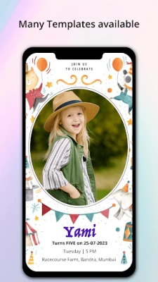 • Personalized Design: Craft perfect invites with a wide selection of templates. Add amazing filters and effects to make your invitations truly special. Whether it’s a kid's birthday or an elegant adult celebration, the app has designs to suit every need.