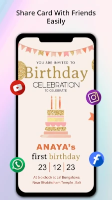 • Specialized Invitations: From Hindu digital wedding cards to birthday invitations, Birthday Invitation Maker caters to every celebration imaginable. Create and share wedding, birthday, party, and event invitations all in one go.