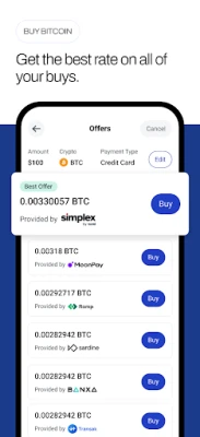 - Get competitive offers from multiple providers on your coin/token buys.