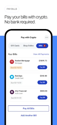- Use crypto to pay off bills like credit cards, mortgages, car loans, student loans, and more (US only).