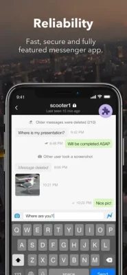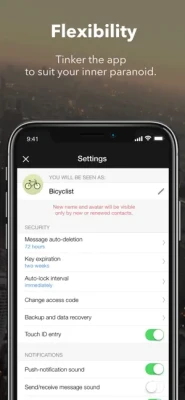 There is also a number of additional security measures like pin-code app lock, messages auto-expiration, deletion of a message on both phones and more. Commercial corporate version of the app's is also available - server software can be deployed on premise.