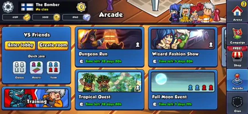 - Two weekly events with exciting gimmicks, fascinating maps and awesome rewards! This is how you gain gold coins, gems, cards and new accessories for your Bomber!