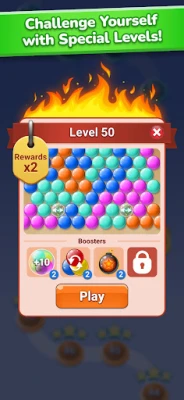 A: We've got you covered! If you're stuck on a tricky puzzle, you can use powerful boosters, like bombs, to blast the bubbles away. These boosters help you beat even the toughest challenges.