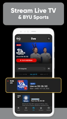 - On Demand TV: Take BYUtv and watch live TV anywhere with 24/7 live streaming