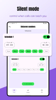 • Silence calls with custom schedules.