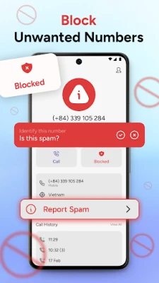 Use the call blocker feature to stop unwanted calls. You can block spam calls, telemarketers, or unknown numbers in one tap. Stay focused without interruptions from fake or scam callers.