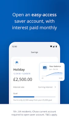 (4) 18+, UK residents. Chase current account required. Round-up account balance transfers to elected Chase current or saver account on anniversary of account opening. T&Cs apply (see www.chase.co.uk/gb/en/legal/round-ups/).