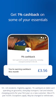 (3) 18+, UK residents. Eligibility applies. 1% cashback on groceries, everyday transport, fuel and electric charging points for your first year as a new customer. Max £15 per month. Exceptions apply (see chase.co.uk/gb/en/legal/Cashback-FAQs). May be changed or withdrawn.