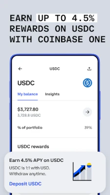 ² Upon purchase of USDC, you will be automatically opted in to rewards. You can opt out at any time. The rewards rate is subject to change. Customers will be able to see the latest applicable rates directly within their accounts.