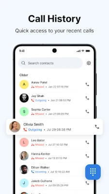 This phone and contacts app This calling app may request default phone handler permission to manage calls. Call history access is used only to show call logs. The contact telephone app does not change or delete call data. All contacts and call information stay on your device and are not uploaded to any server.