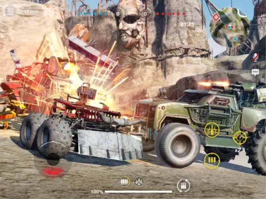 Crossout Mobile is a legendary MMO-action game for your mobile device. At the beginning of the game, you can choose one of three craft: with caterpillar tracks, spider legs, or wheels. Each of these builds has its advantages and disadvantages, and the choice of the build depends on individual preferences and tactics. Join team PvP battles of 6 vs. 6 players in a ruthless post-apocalyptic world or challenge waves of computer opponents in PvE missions. Fight under the flags of post-apocalyptic factions; they will reward you with new parts and special abilities. Feel the fury of mad car battles for resources and victory!