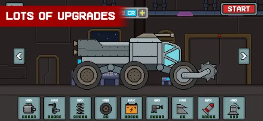 Explore all the planets of a distant galaxy on your rover, conquer the lack of roads and fight off the monsters and mutants who captured the peaceful colonists. This will help you Professor Lee. He will bring up to date and help pump the transport in the hangar. Want an adventure? Want to play with cars in space? Or you like pixel-art games. Then this game is for you!