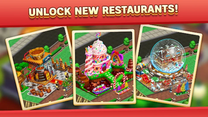 • Tap to cook food, serve customers, and manage your restaurant.