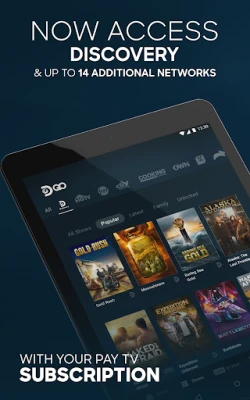 Catch up with your favorite Discovery shows anytime, anywhere with the all-new Discovery GO app - and now get access to up to 14 additional networks including TLC, HGTV, Food Network and more - all in one app. It’s FREE with your pay TV subscription.