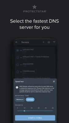 DNS Changer by Protectstar™ lets you switch the DNS server on your Android phone or tablet in seconds. Use a fast, privacy‑friendly DNS on Wi‑Fi and mobile data (3G/4G/5G) to reduce DNS lookup time, improve page and app loading, and help stabilize latency for online gaming. Choose DNS providers that can filter many advertising, tracking and malicious domains at DNS level, and set up Family‑safe DNS for kids – all without complicated network settings.