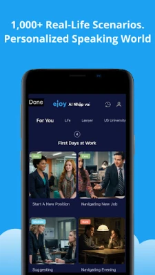 • 1,000+ real-life scenarios: You’ll never run out of practice material. From professional situations like interviews, meetings, and negotiations to everyday conversations like ordering food or talking with your kids. AI Speaking World prepares you for it all.