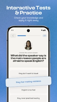 - English quizzes that test your skills and help you track progress