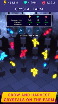 Don't forget to expand and take care of your crystal farm, which is a great source of resources for improvements! The farm produces resources even when you are out of the game.