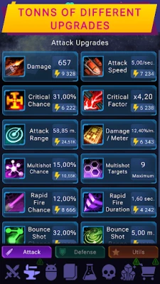 To make you feel like a real strategist, and each new game was unique, The Crystal: Roguelike Tower Defense provides a flexible customization system for the game build. After each opponent you defeat, you receive money for which you can improve one of the characteristics. Choose from over 30 stats in 3 different categories. If you want to do more damage, upgrade your attack. Get regeneration? Then protection is your choice. Or maybe you need something else? Then support is your choice. Use only those characteristics that you need.