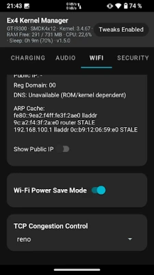 -Wifi infos, Wifi Power Save Mode, TCP Congestion Control, show IP (also public if wanted), ...