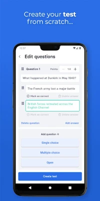 • Supports multiple choice and open questions