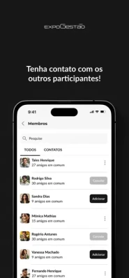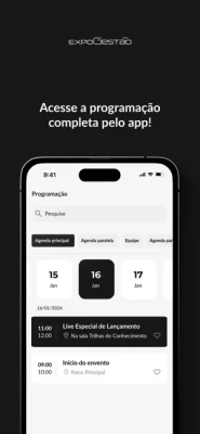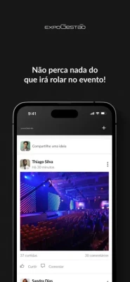 Com o aplicativo ExpoGestão, você tem acesso a uma rede social exclusiva, pode fazer novos contatos, enviar perguntas aos palestrantes, trocar mensagens com outros participantes, enfim, interagir com a comunidade. Além disso, você pode consultar a programação, avaliar conteúdos, dar feedback e responder quizzes. Utilize o APP e aproveite ao máximo os recursos.