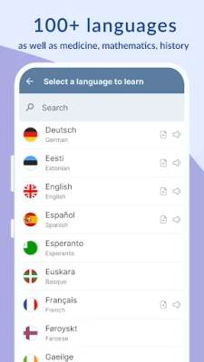 - Audio & Spacing Control: Adjust speed and spaced repetition intervals. Listen & speak Spanish, German, French, Korean and other languages.