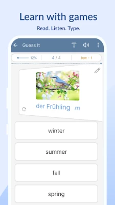 Learn Spanish, French, German, Japanese, Korean, Italian, English vocabulary, and more – free, offline, with spaced repetition & fun flashcards games to memorize by heart!