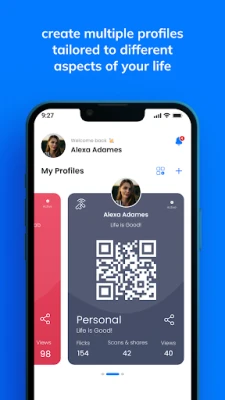 But that's not all! With Flickit, you can create multiple profiles you, each tailored to a different aspect of your life. Have a professional and business life? No problem! Create a profile specifically for your work-related contacts, complete with your business card, LinkedIn profile, and other business details. Want to keep your personal and social contacts separate? Flickit has you covered! Create a profile for your personal networking, complete with your personal phone number, email, and social media accounts. You can even create profiles for different social media platforms, so you can easily share your Instagram handle with your new friends, or your Twitter handle with your professional contacts.
