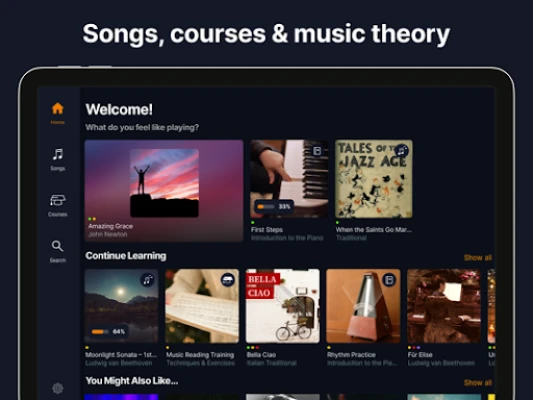 flowkey makes it fun and easy to play your favorite songs on piano – whether you’re a complete beginner or an experienced player. All songs and courses are created by professional pianists, with interactive lessons, practice tools, and instant feedback to help you learn piano the way that works for you.