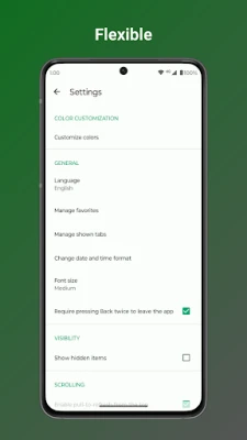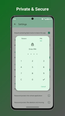 • Secure sensitive files with password, pattern, or fingerprint locks for hidden items or the entire app.