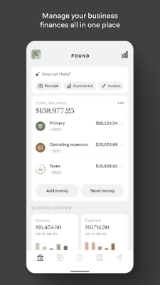 Small businesses love Found. With robust business checking plus smart bookkeeping and tax tools, Found simplifies your entire workflow. Track expenses, save receipts, save for taxes, send invoices, and pay contractors—all from the app. And all without costly hidden fees.⁴ Get so much more for free⁴ with Found.