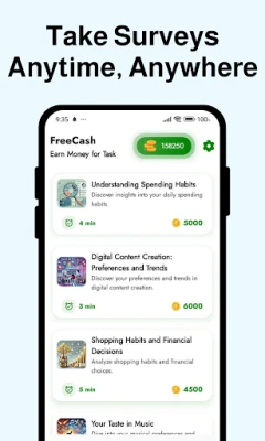 With FreeCash: Earn Money for Task, sharing your opinions has never been easier. Participate in short surveys about lifestyle, products, and more. Earn reward points you can redeem through trusted platforms. It’s a simple, fun, and secure way to make use of your free time!