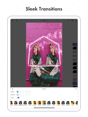 TRANSITIONS: Awesome transitions for your edits that you can add with a single tap! We have the best video transitions to wow your followers. Just add your pictures & videos and just by using a few taps you create a cool video with professional looking video transitions.