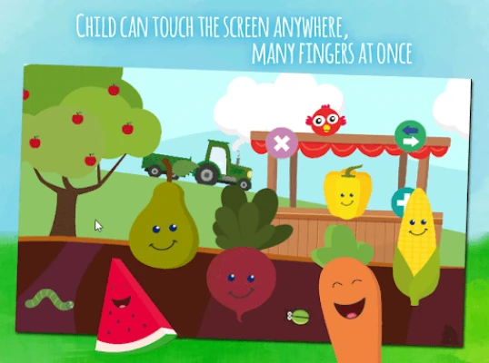 Perfect for kids and toddlers from 1 year old. Each touch or swipe will cause a cheerful reaction of the animal, fruit, vegetable, or the world around them.