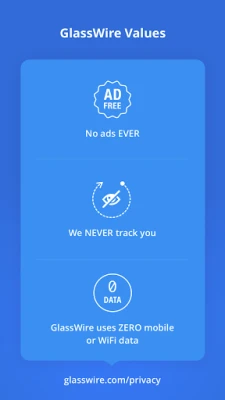 Our Windows and Android software combined have been downloaded over 20 million times! We make money through sales of our GlassWire for Windows software, not by selling your data to third parties. With GlassWire your data and app usage information never leave your phone. GlassWire will NEVER show you ads or violate your privacy.