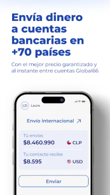 - Entre usuarios Global66 los envíos de dinero son instantáneos, sin importar el país en el que esté cada uno.